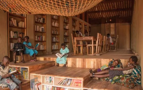 即使在非洲刚果,孩子们也有自己的图书馆,全部用原木搭造,很原生态。