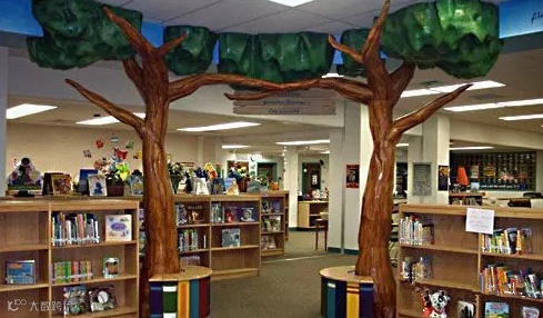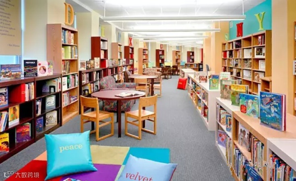 再来看看学校里的图书馆,这是美国一所公立小学的图书馆,可以读书,可以讨论,还能听老师讲故事。