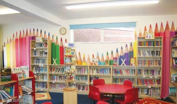 笔是画在墙上的,让这个图书馆的氛围一下子变得非常多彩、活泼,没准家里也能试试。