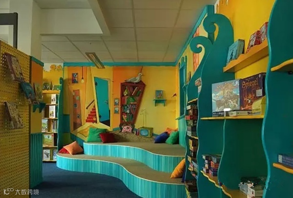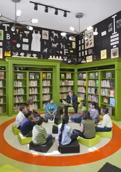 这是美国纽约州的一个儿童图书馆,色调很温暖,可以随手取书、读书,孩子和书一下子就有了亲近感。