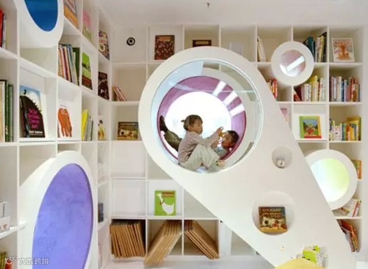 日本的绘本图书馆,像游乐场一样,孩子们可以钻到小洞洞里去读书。
