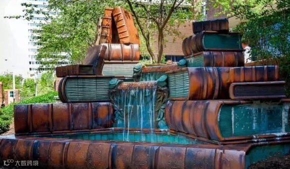 纽约州南部一个小城公共图书馆(Once Upon a Time),门口放这样一个喷泉,有点像要走进某个“魔法学院”,一看就知道这是讲故事的地方。