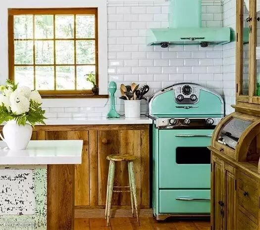 你只需要买一些马卡龙色的小电器,像吐司机、热水壶作为装饰放在厨房就可以。或者你可以买一台SMEG的薄荷绿冰箱放在厨房,让厨房也清新文艺起来。