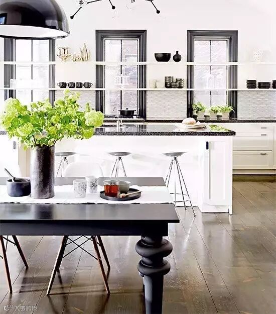 5.喜欢干净、明亮的厨房,但是又不想整个厨房都是黑白灰。