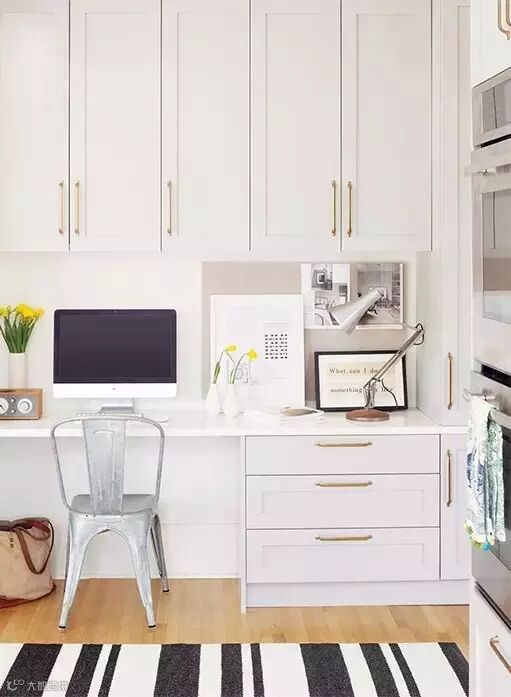 把厨房做成开放式,视觉上会让家里的面积看起来更大一些,更通透。为了更好地利用开放式厨房你可以把餐桌变身成为家人的电脑桌,晚餐过后收走吃完的饭菜,只需要在餐桌上放一盏台灯,一个音响,就可以进入工作状态。
