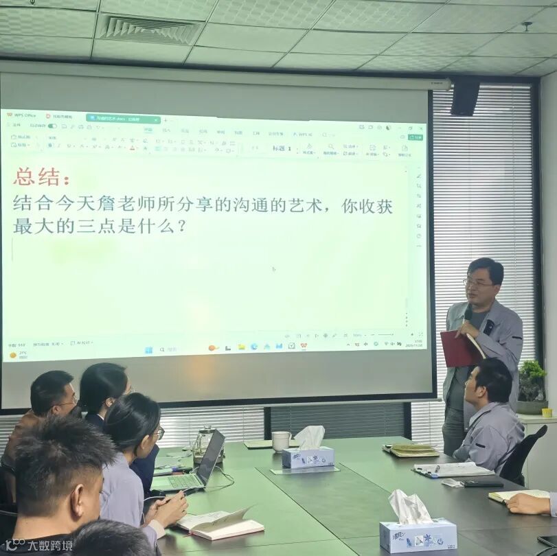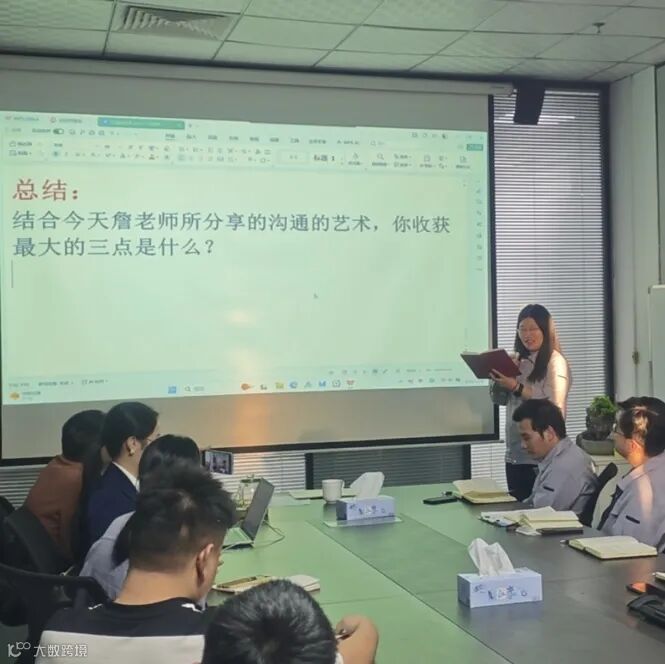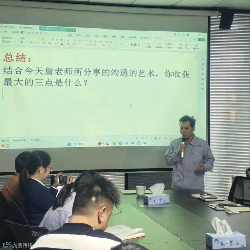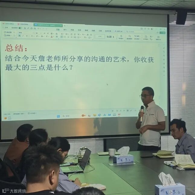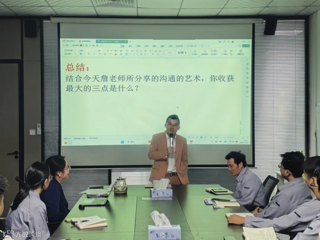詹老师以“沟通中其实有6个人”的精妙比喻开场,瞬间点燃了大家的思考。他指出,沟通不仅是信息的传递,更是认知的校准、情感的联结与关系的构建。培训围绕沟通的核心要素、常见误区、心理学技巧及上下级、同级沟通策略展开,内容扎实、案例生动,既有理论高度,又极具实操性。