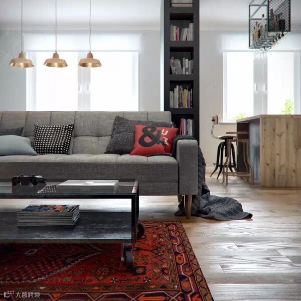 整个家居之中色彩基调是以深色为主,沉稳大气、高端奢华,其中还用了红色来点缀,增添跳动活跃的气息。