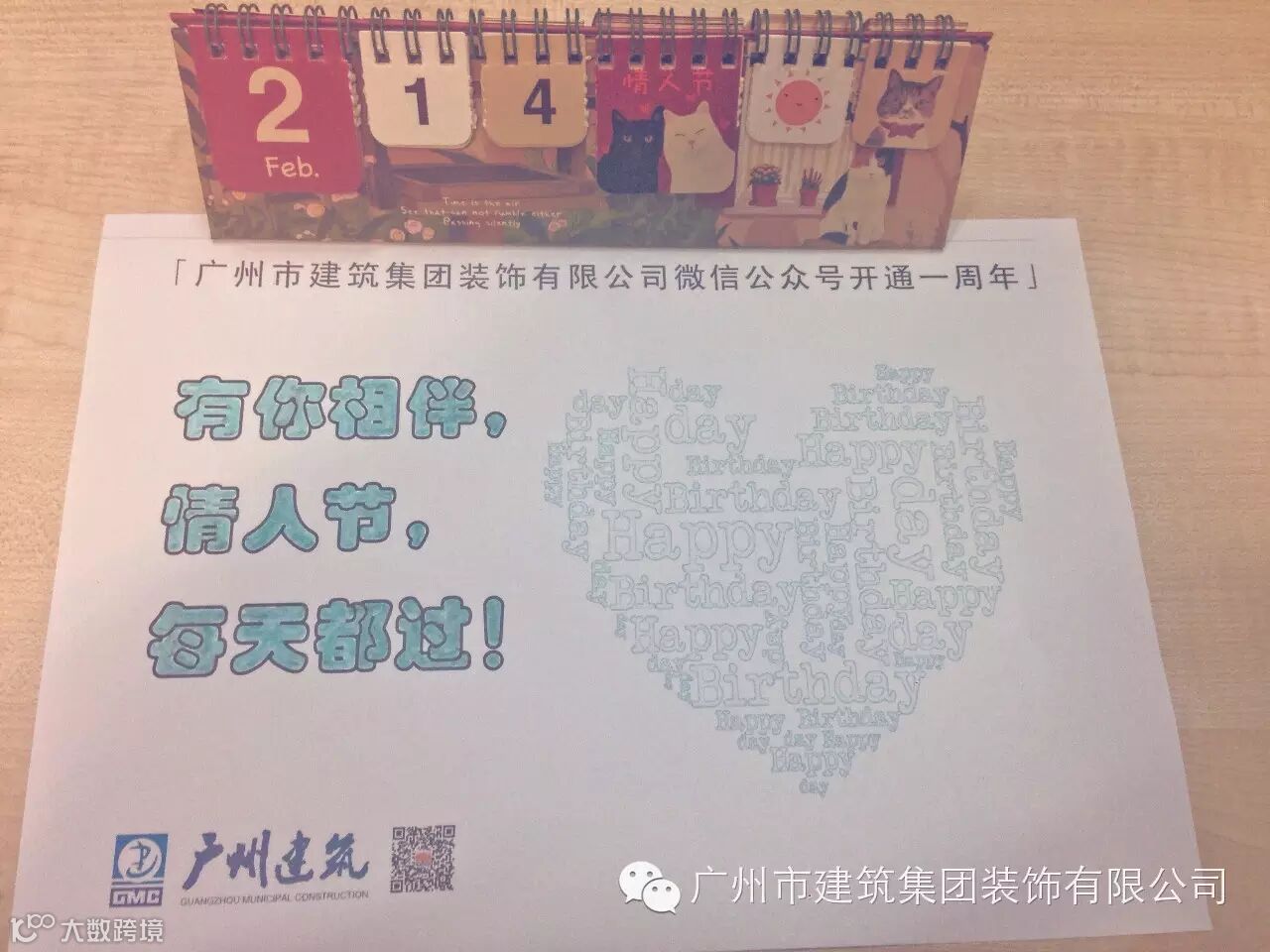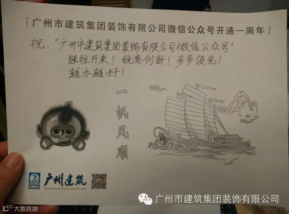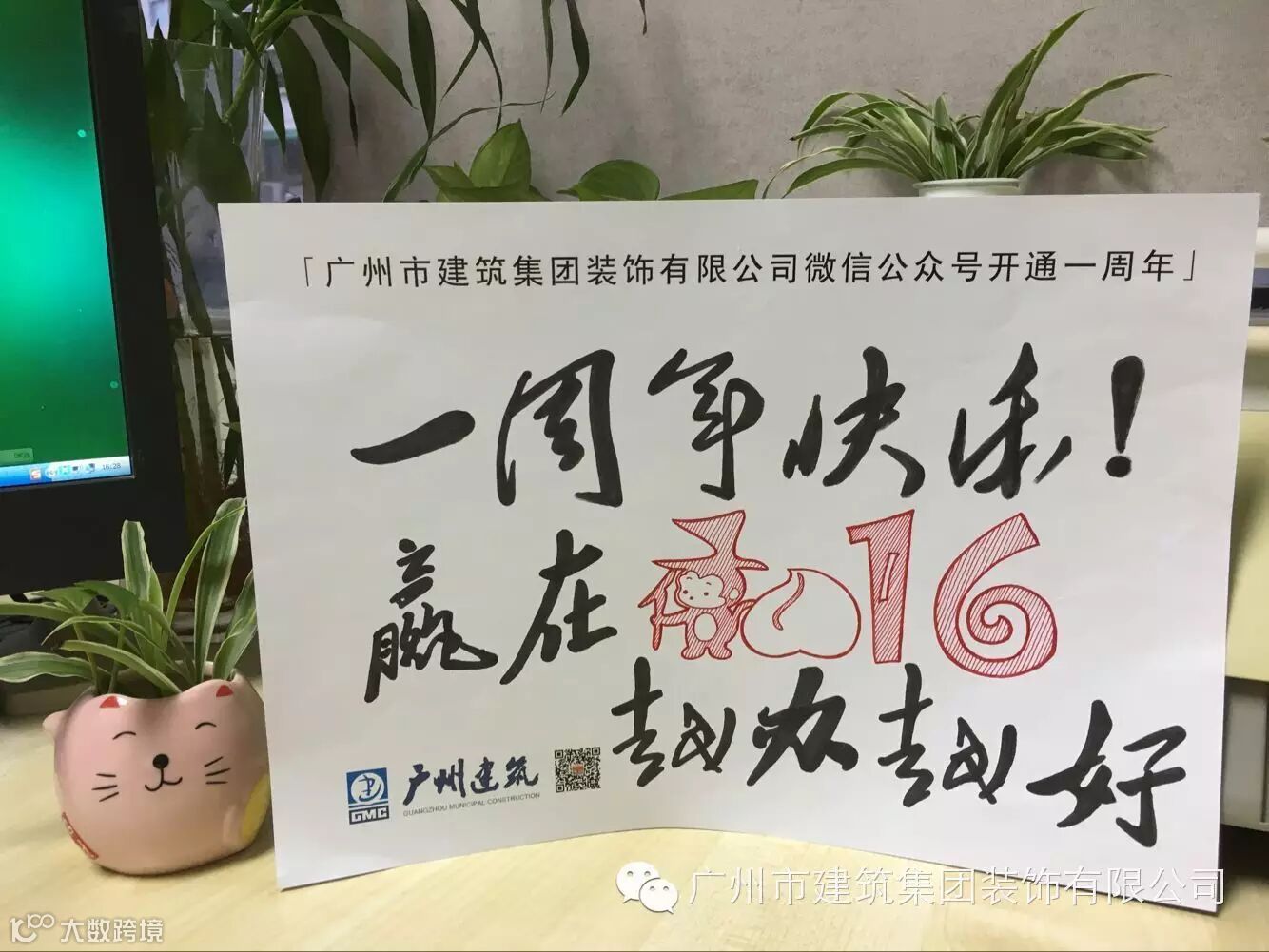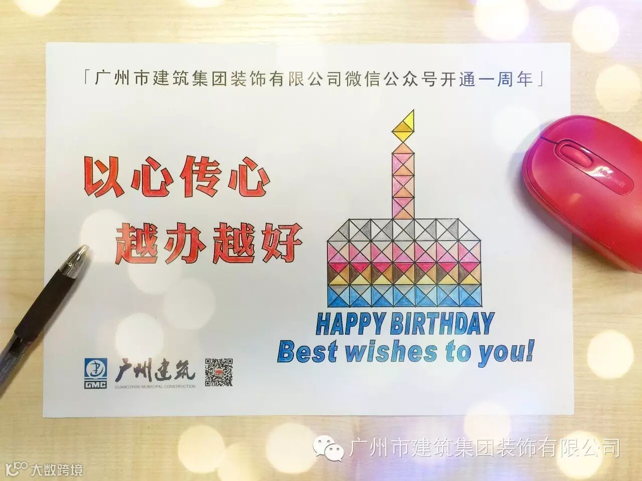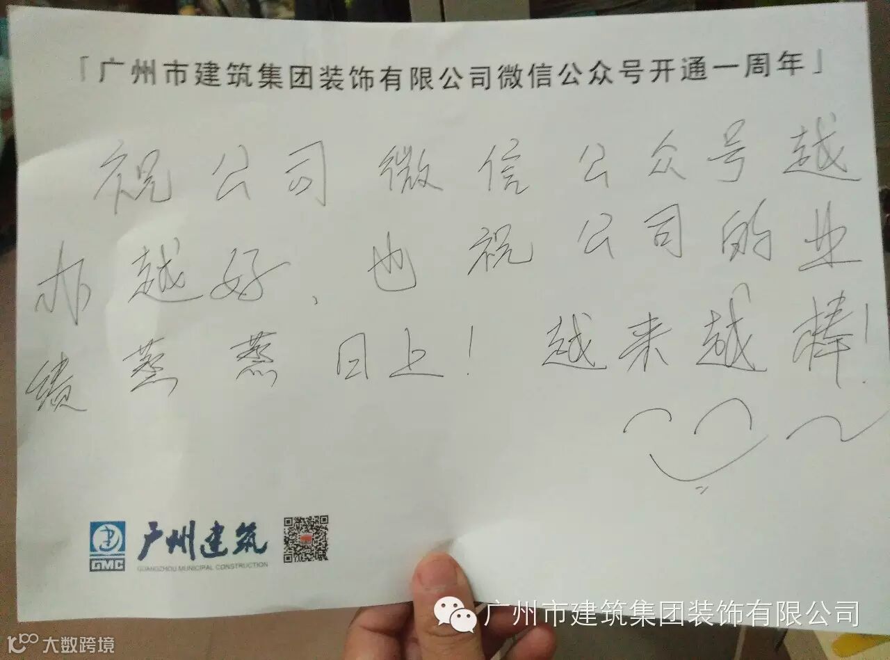 公司同事送祝福:“庆祝广州市建筑集团装饰有限公司微信公众号开通一周年!在过去的一年里,公众号发表的文章非常符合现代建筑装饰行业的发展状况及建议,具有很强的学习性,同时也辛苦为微信公众号为之付出的同事,在新的一年里祝微信公众号越办越好!”