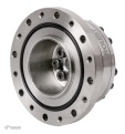 柔轮为中空型标准筒结构,盘式凸轮波发生器。输入轴通过十字滑块联轴器连接,直接与波发生器内孔配合,结构紧凑。可采用两种连接方式,刚轮端固定,柔轮端输出;或者柔轮端固定,刚轮端输出。