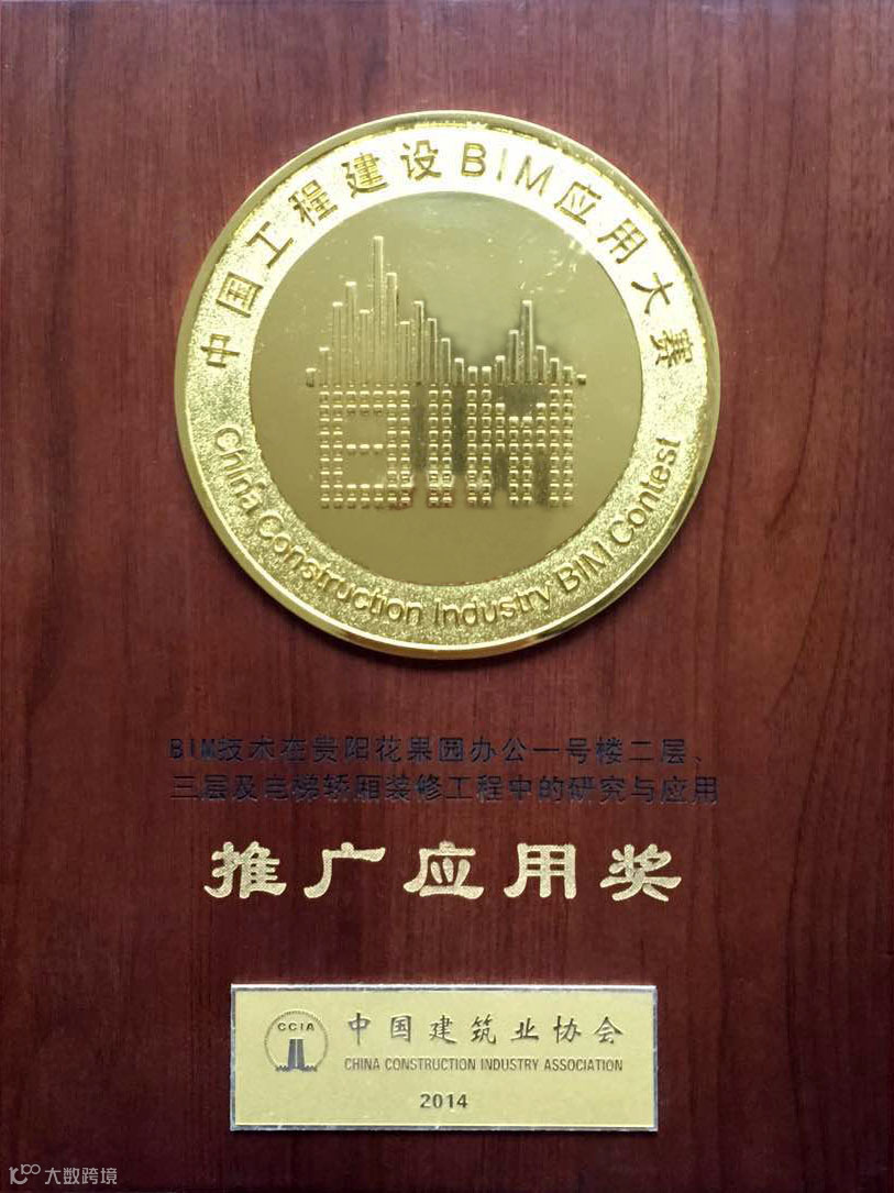 贵阳花果园办公1号楼项目的BIM研究与应用成果荣获“第二届中国工程建设BIM应用大赛推广应用奖”。