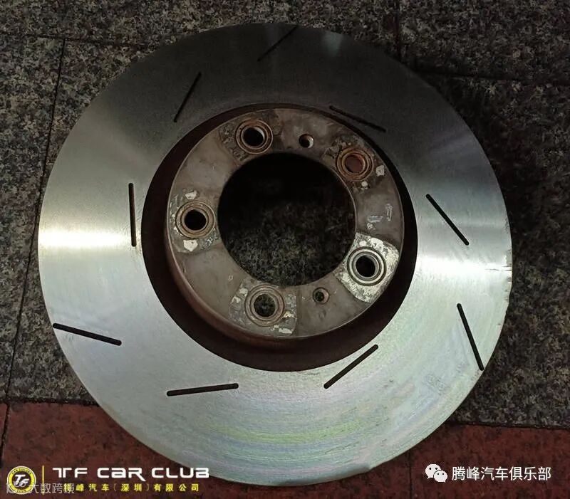 这是刚刚安装好的保时捷刹车盘,光盘后光亮平整如新。