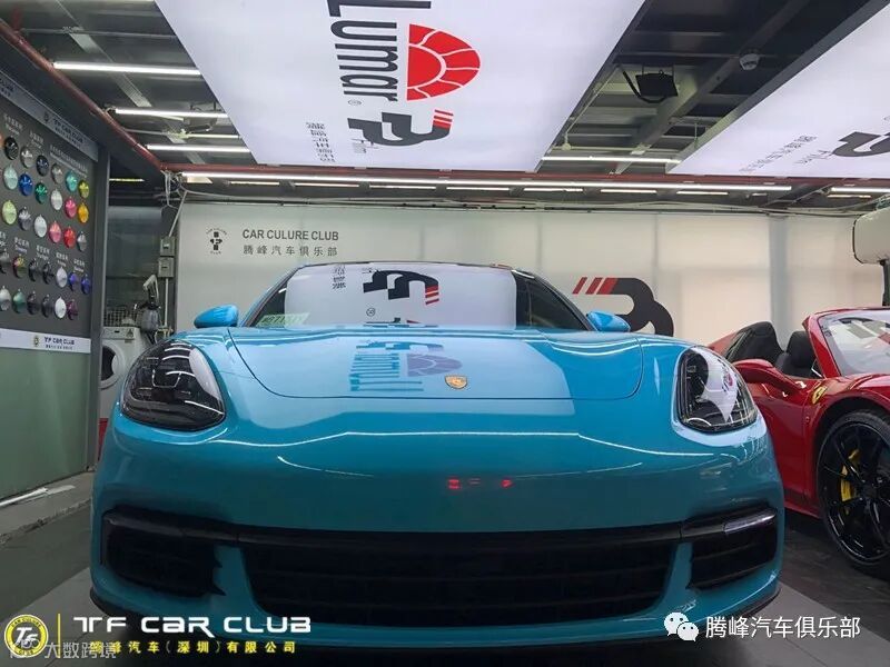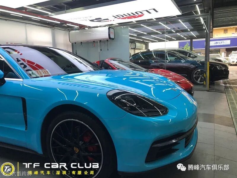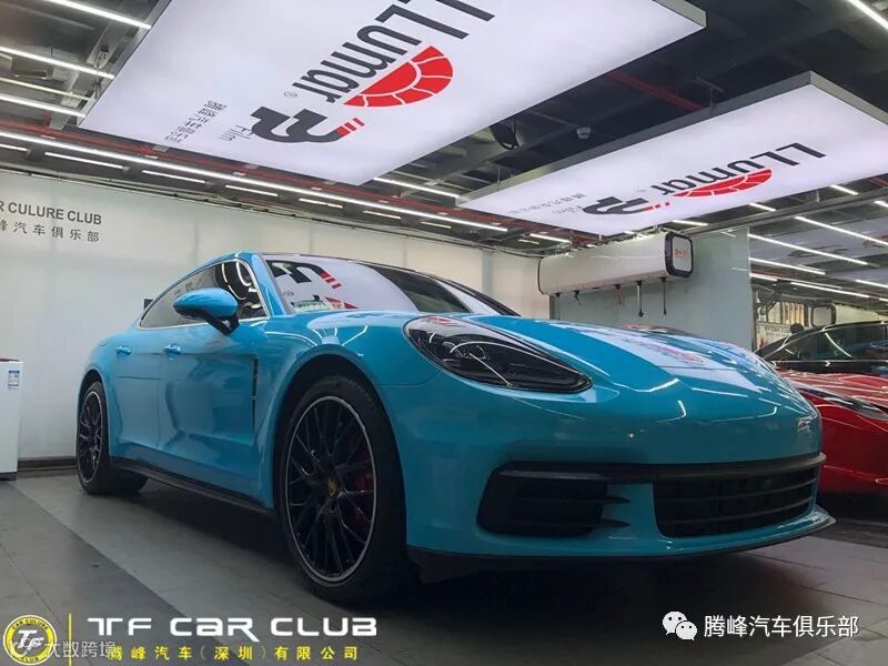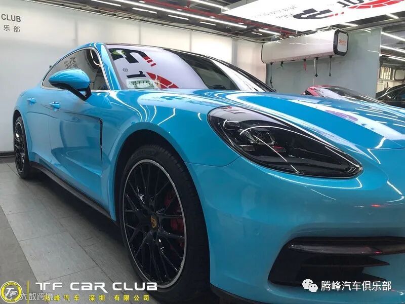 今天带给各位坐落于中国深圳市南山区、专精于超级跑车改装保养的知名店家腾峰汽车俱乐部改色的保时捷帕拉梅拉亮浅蓝贴膜,车膜方面用的是CYS的亮浅蓝,这次除了改色贴膜,刹车卡钳也做了烤漆改色亮红色,另外包括汽车保养+后避震+轮毂改色等,视觉效果相当独特,一起来看下。