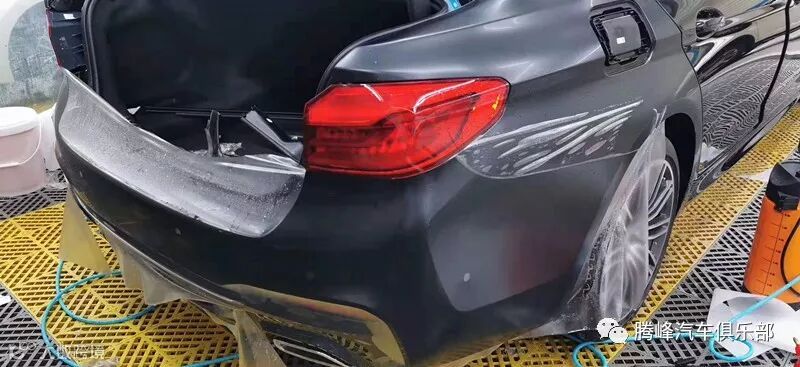 哑光隐形车衣漆面透明保护膜施工效果展示,质感满满!宝马5系后杠正在装贴了哑光系列漆面保护膜!
