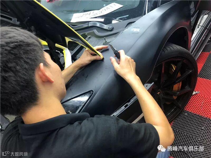 这是贴膜工匠师傅正在为兰博基尼贴剪刀门车膜