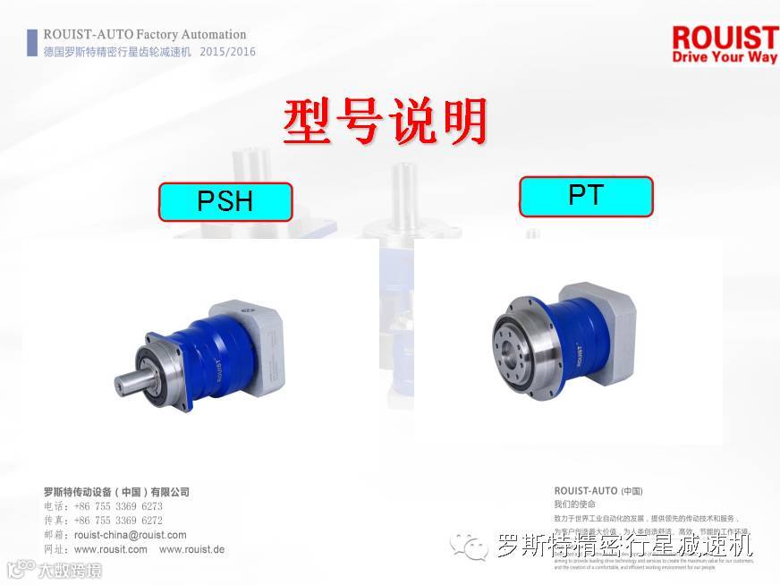 1.6 满足上述指标后,就可以根据Rouist行星减速机的产品手册,选择在安装尺寸、轴径和输入法兰与所使用的电机适配的减速机了。
