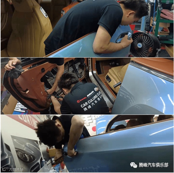 贴完膜以后,维修师傅正在小心翼翼地安装拆下来的车门内饰。