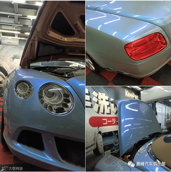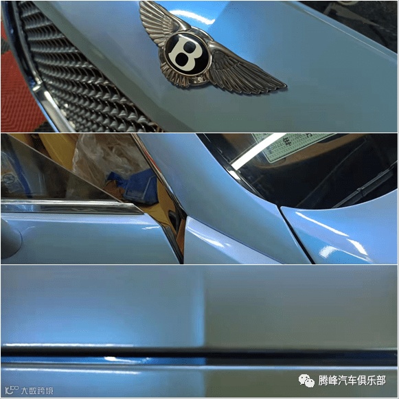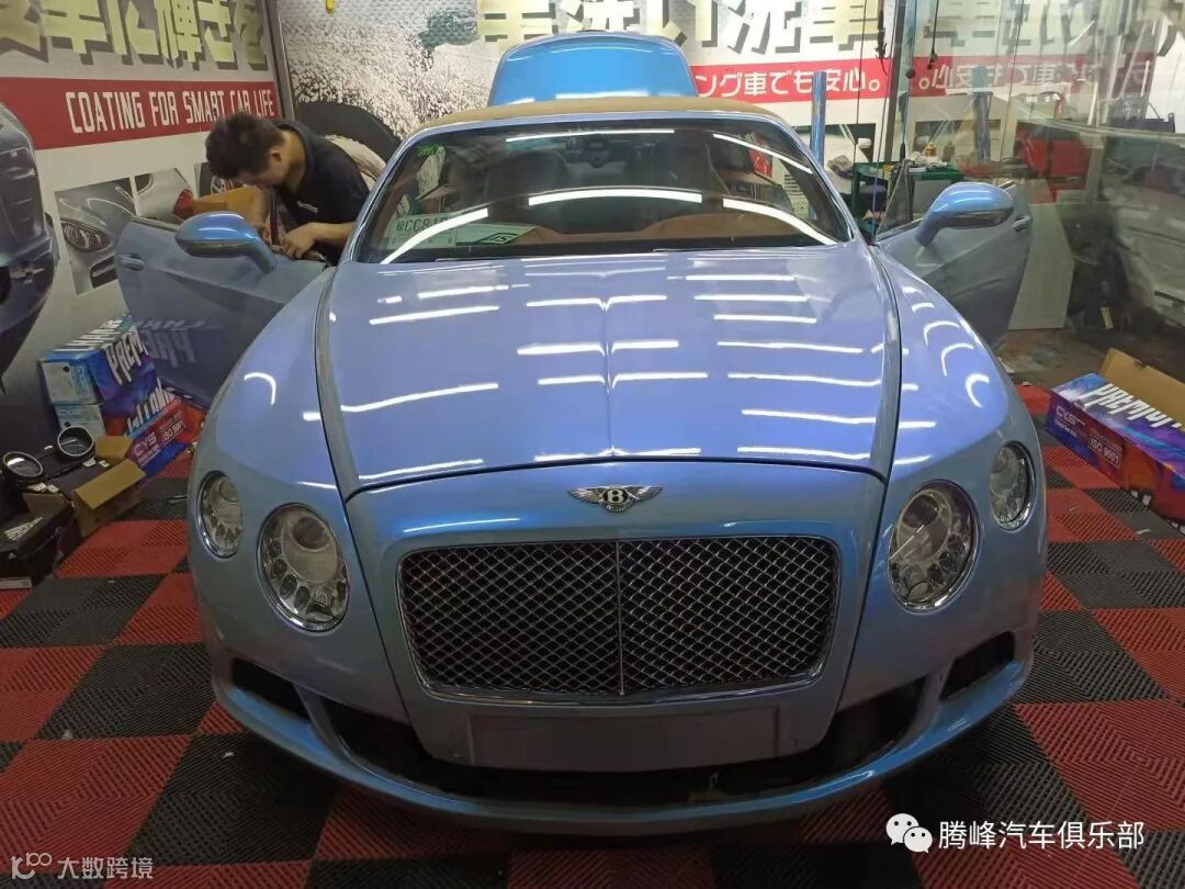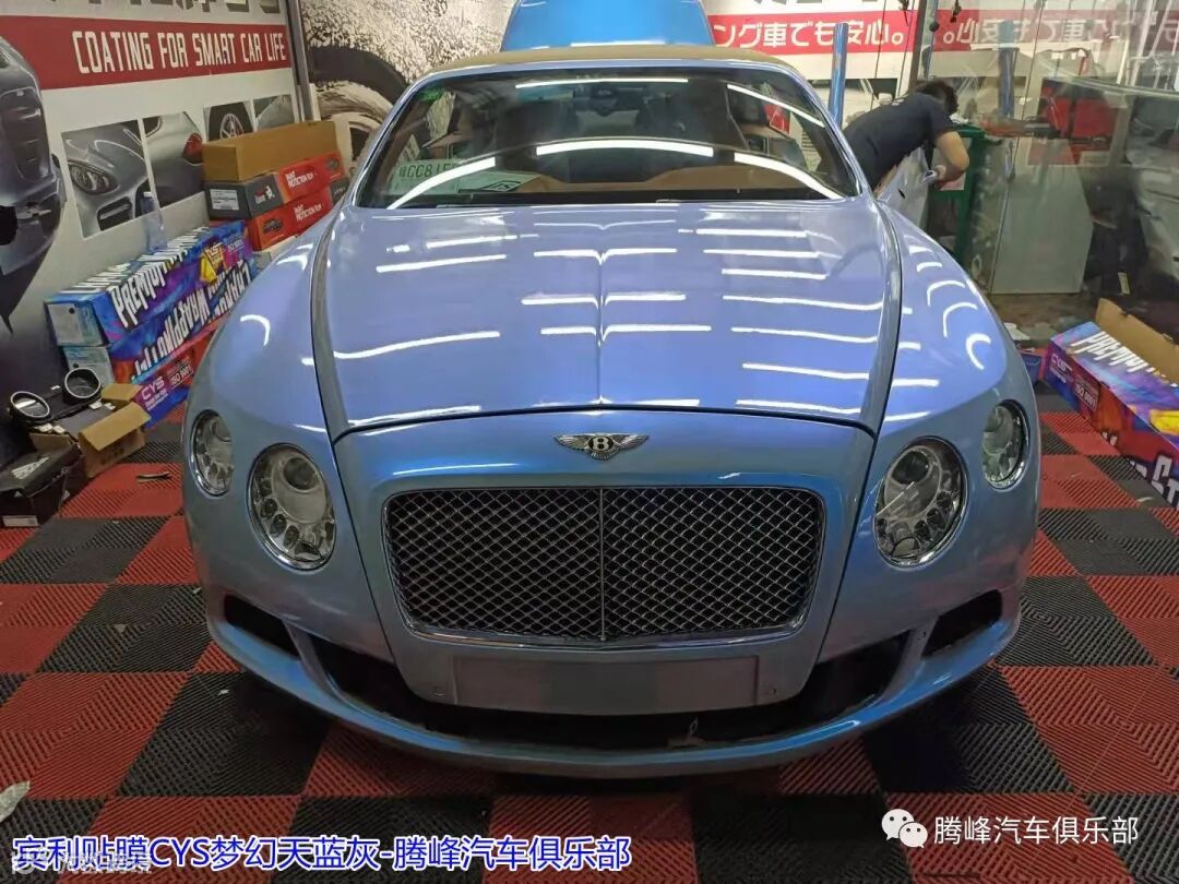 宾利欧陆GT梦幻天蓝灰车身改色贴膜上车效果细节