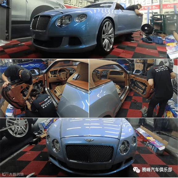 这是老款的宾利欧陆GT,贴膜前专业的维修师傅需要配合贴膜师傅,需要把倒车镜和车门把手拆下来施工作业 ,由于这款宾利原装设计方面存在不是很人性化,拆装起来不但难度系统高而且非常的麻烦。