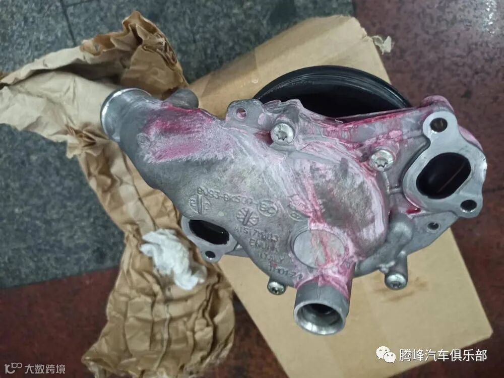 上图所拍摄的位置就是水泵的安装位置,新水泵安装之后还需要检测冷却系统密封情况。之后,添加冷却液到规定值,启动发动机直到散热风扇可以正常散热,再次检查水泵安装位置,没有渗漏,问题解决。