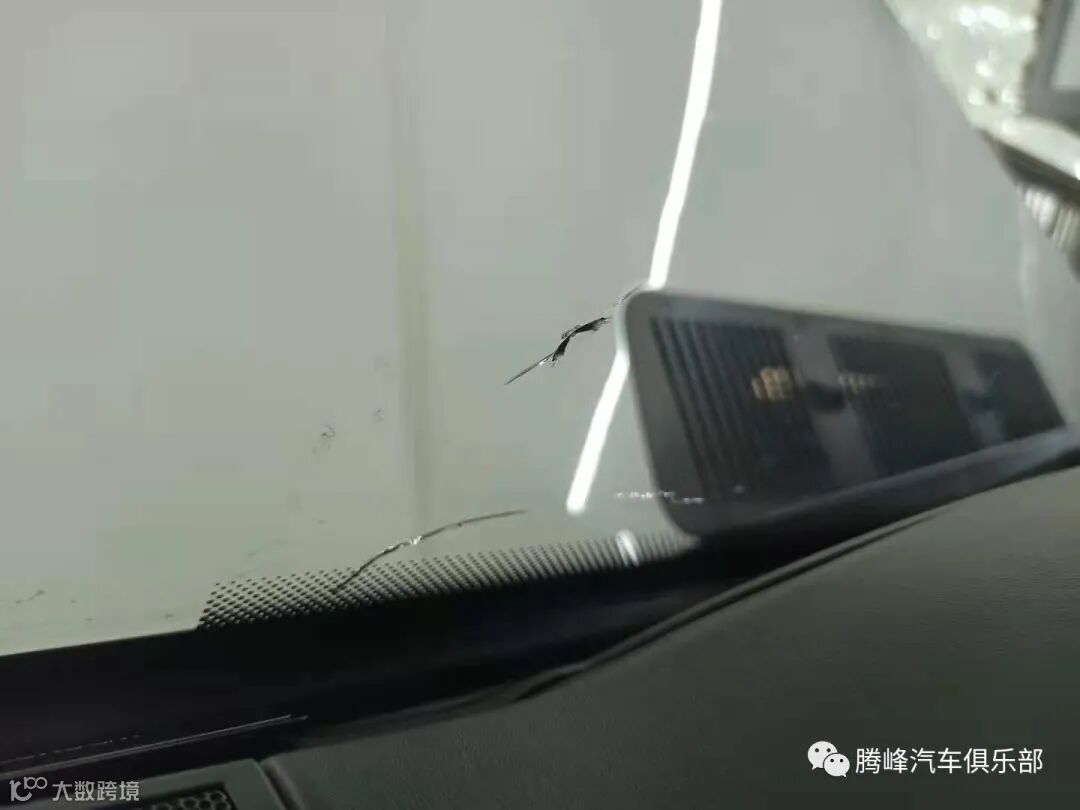 如上图,奔驰G63前挡风玻璃受损情况,有两处不同程度的裂痕,因为此次维修事项比较多,为了更经济的解决方案车主选择给前挡风玻璃进行修复处理。