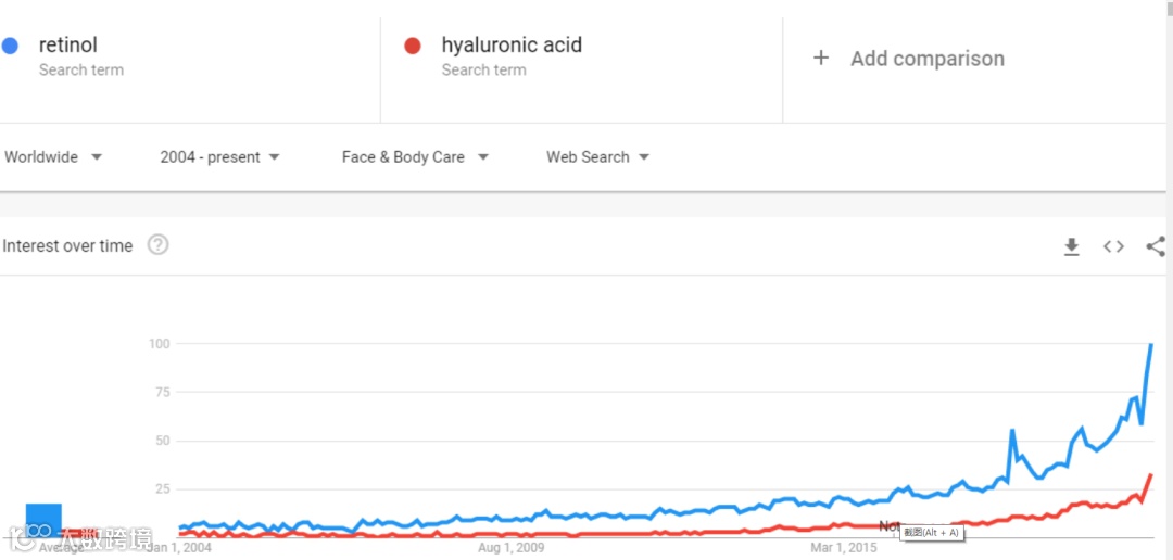 视黄醇和透明质酸—— 增长趋势:谷歌趋势