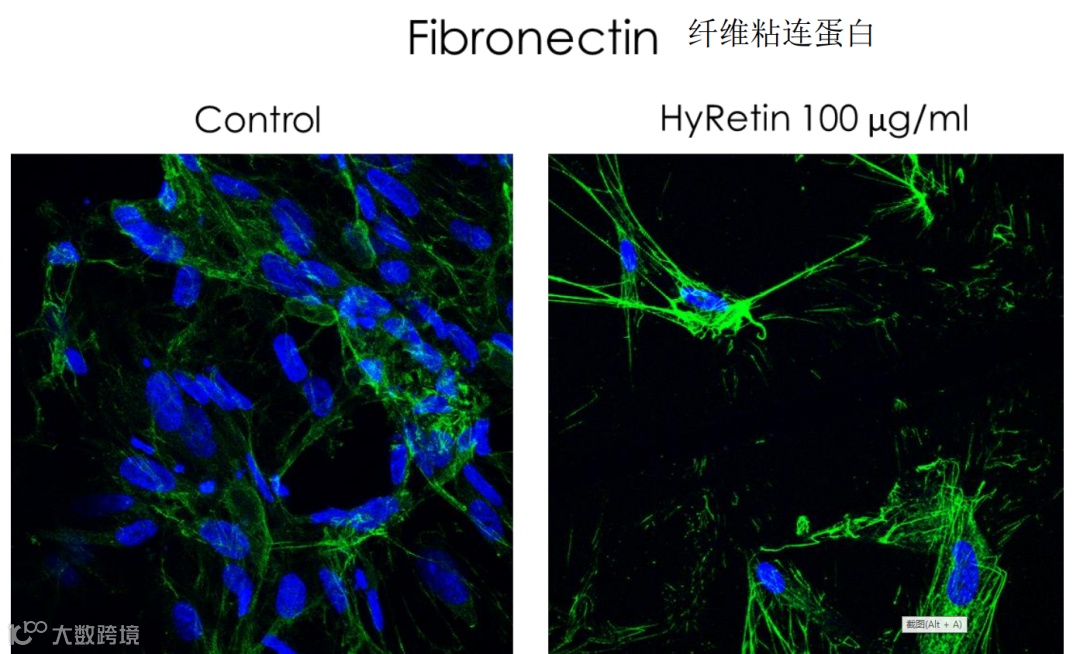 实验证明HyRetin加强了纤维粘连蛋白的表达。