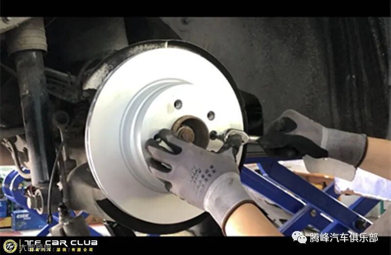 腾峰的专业师傅正在安装刹车盘