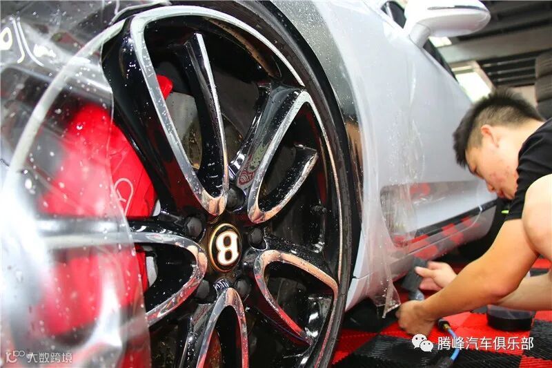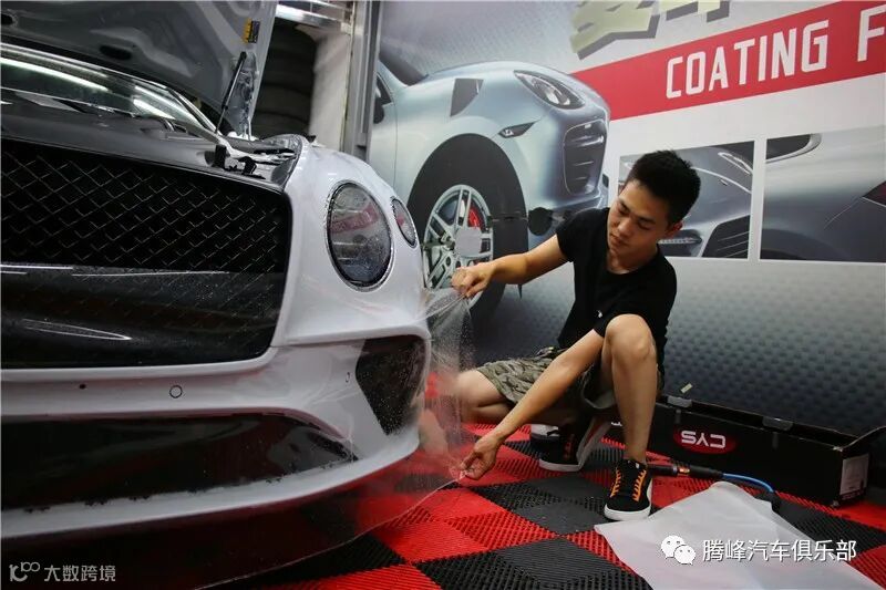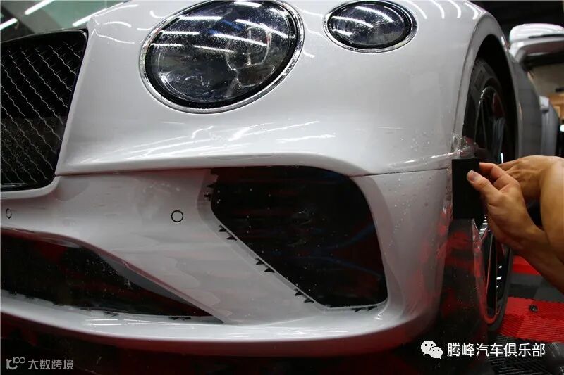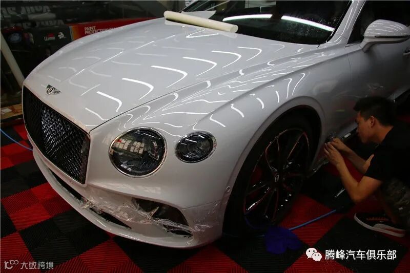 腾峰贴膜技师正在为宾利GT贴龙膜G2车衣