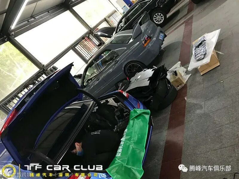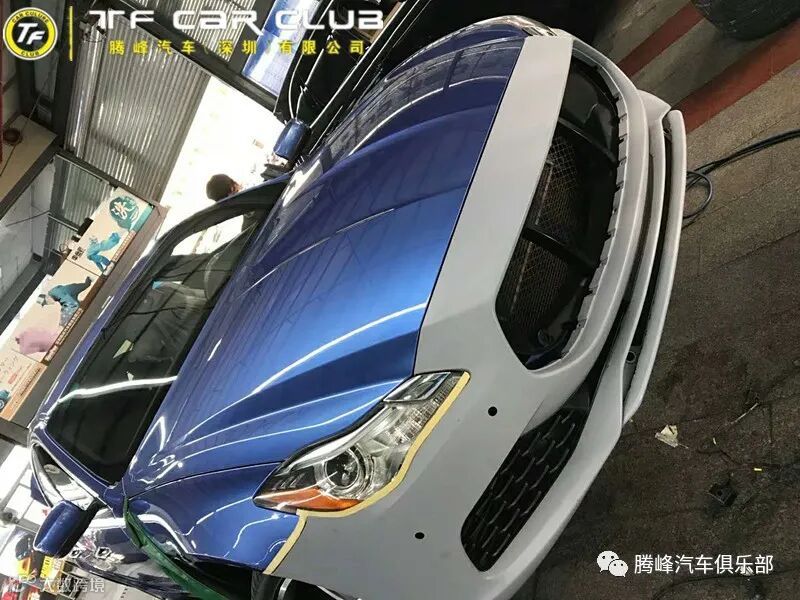 虽然是原厂包围,但也是需要先把原先的前保险杠拆下来,把新款的前杠总成进行喷漆前的安装调试,以确保喷漆后100%对位,确保改装的效果。