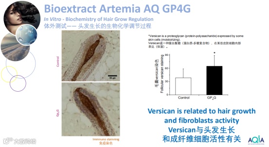 卤虫可以在极端的条件下(高盐,低PH,极度低温)存活,在这些有害条件下,卤虫会合成并储存大量的核苷酸,尤其是GP4G,即四磷酸二鸟苷。当外部环境改善后,生命体会复苏,储存的 GP4G会释放出能量,重启生命进程。在风的作用下,卤虫干卵被从一个水体带至另一个水体。在有利的条件下,卤虫卵会孵化出幼体。卵在最初的24个小时内会吸收自身初始重量1.4倍的水分,随后,胚胎会复苏并接着发育。GP4G是上皮细胞和头发生长调节因子,促进角蛋白、丝聚蛋白、 胶原蛋白和纤维粘连蛋白等蛋白质的合成。来自海洋的能量,为细胞提供能量,促进并增加纤维细胞和胶原蛋白的合成,激活成纤维细胞。