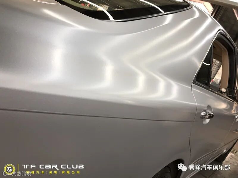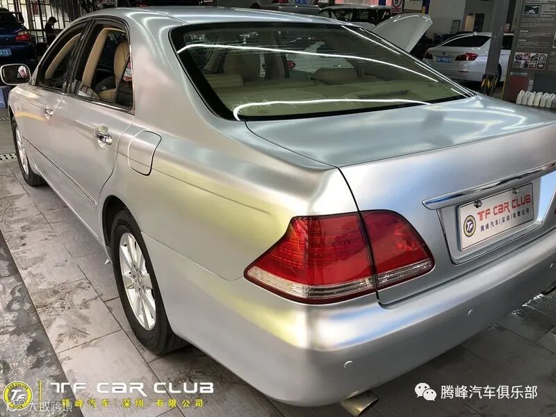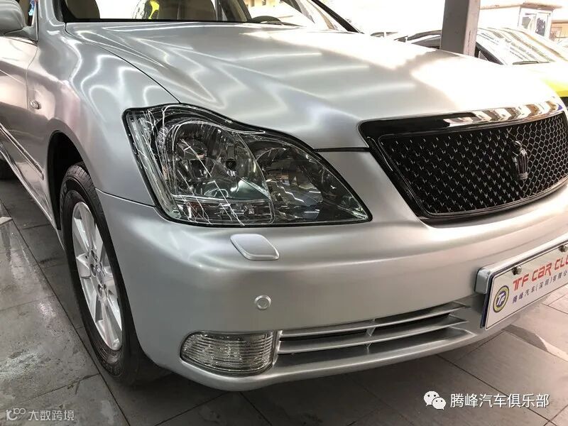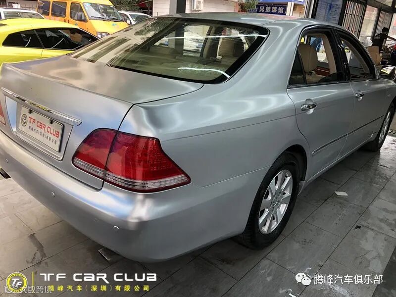 ,最终花了一周的时间,才把这台老皇冠的车主全部完美收工,贴的颜色车主选择的是电光金属钛银,选择这个色,一来可以省去,不必要的变更手续,二来这个颜色比原车的亮银更加的惊艳,亮丽。