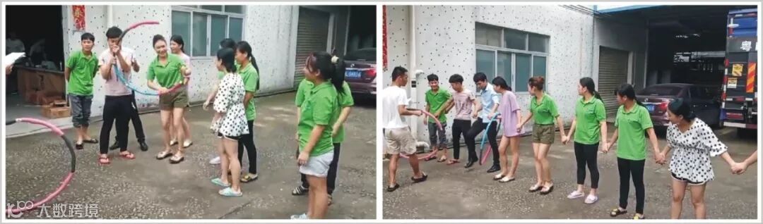 <一圈到底>,在不用手的情况下,将呼啦圈传递一圈回到起点,过程中只可以利用队友的身体传递呼啦圈。这个项目让团队成员能更深刻地体验到员工与员工之间唇齿相依的关系,从而激发出团队更高昂的工作热诚,使团队更具有凝聚力。