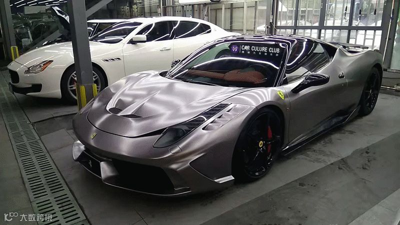 【法拉利458金属电光钛灰车身贴膜-施工后效果图】