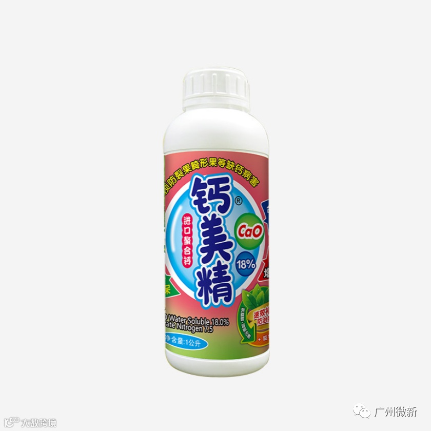 钙美精主要成分为:水溶性氧化钙≥18%,硝态氮≥7.5%,螯合钙,氨基酸和微量元素。可以流动的螯合钙、氨基酸及微量元素协力结合,能使作物快速吸收,迅速改善作物缺钙症状。全程地上地下超强补钙,强力速效补钙。可增强果皮细胞壁厚度,提高果皮结实度,防止裂果。