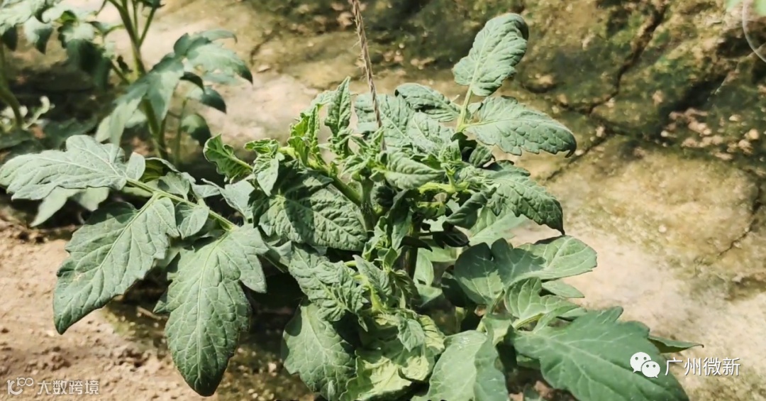 以如下视频为例,我们可以看到,这个西红柿的头顶叶片拧着长了,不舒展,而且颜色也变成深绿色了。这是激素控旺过度的表现。一问菜农,果然是前不久打过控旺药。