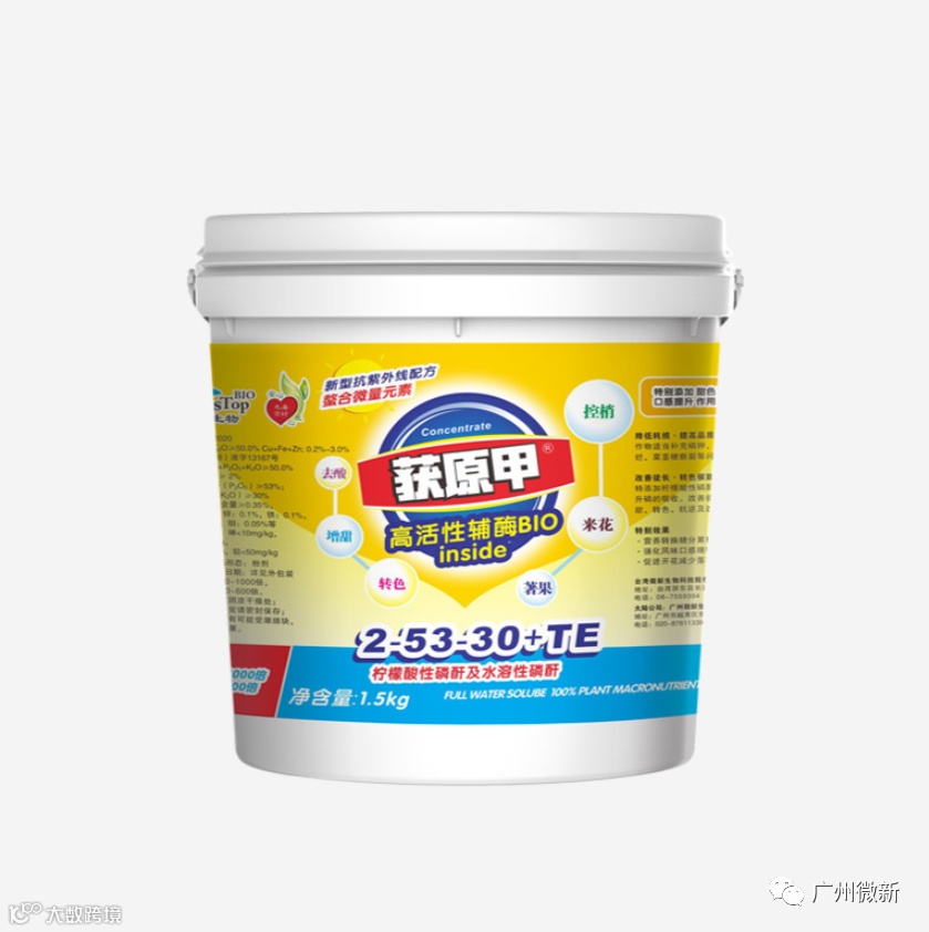 获原甲采用台湾科技配方,为高纯度、高含量的水溶性速效肥,具有促进作物花芽萌发、促进开花、提高座果率、促进果实膨大、增甜转色等作用。