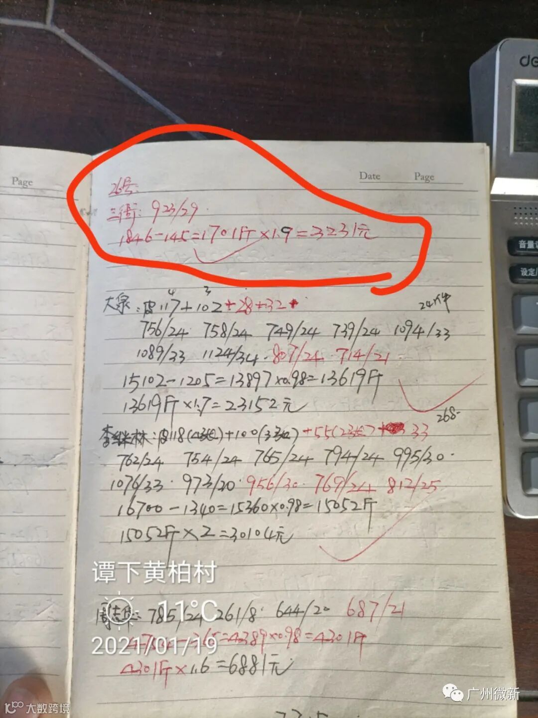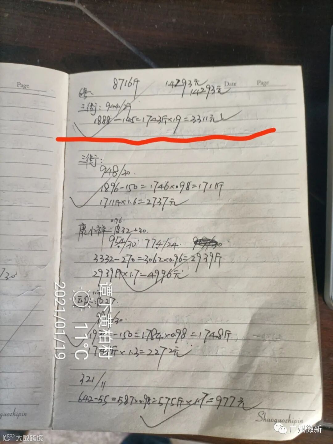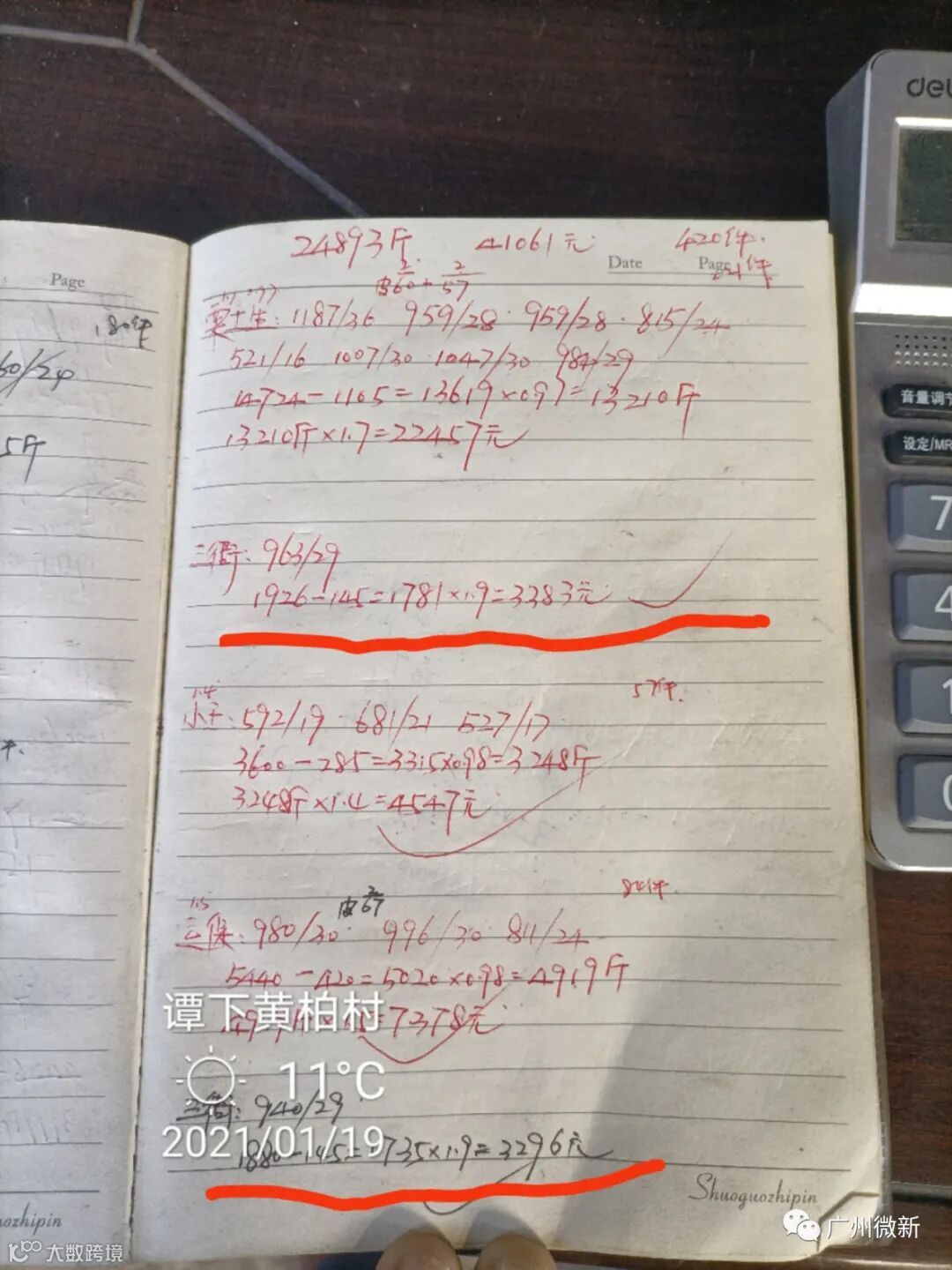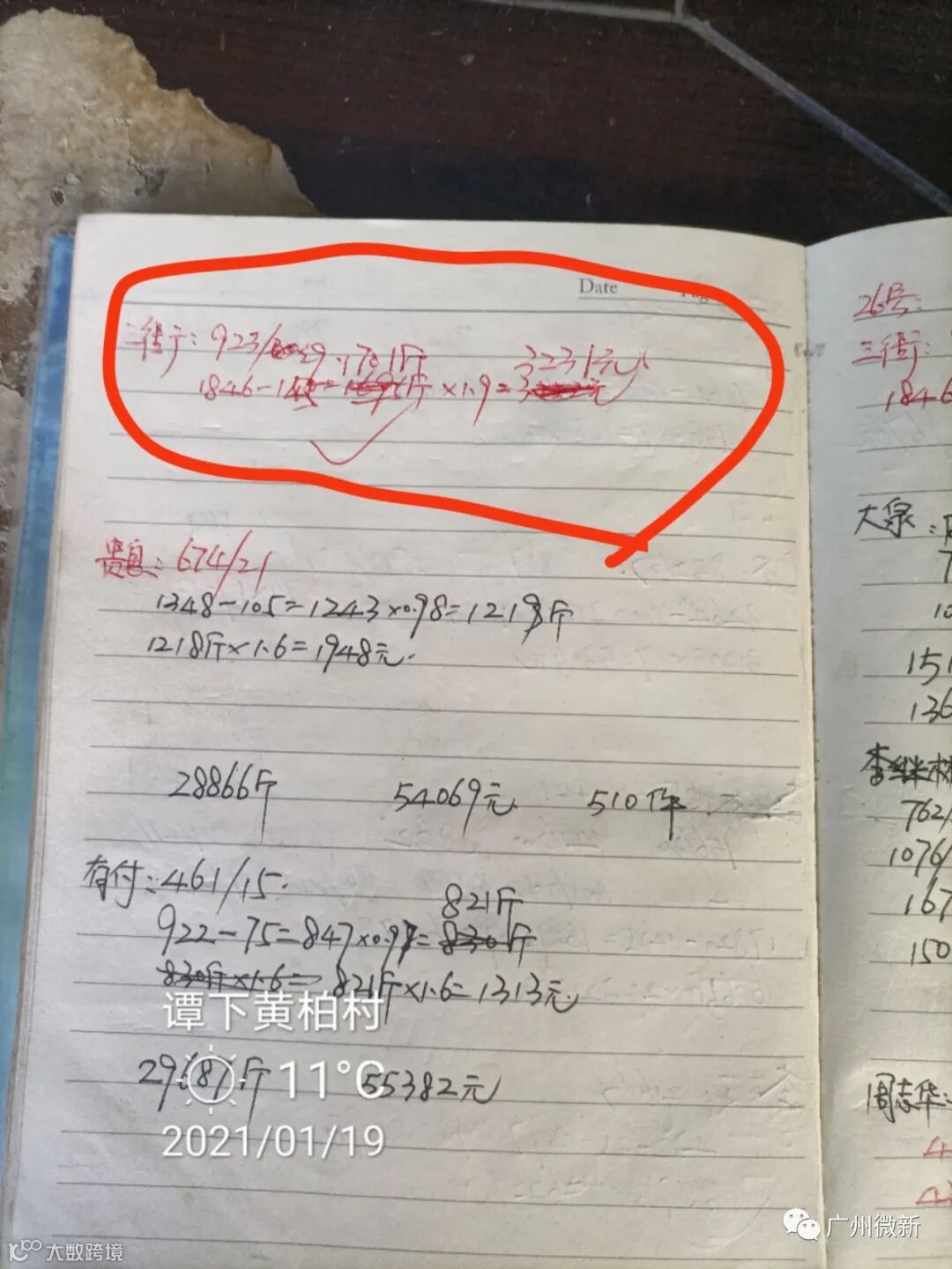 蒋老板的卖果方式比较特别,除了有过一次2.5元订园之外,从2020年12月下旬到现在,他每天都自己剪果去卖百家果。而且特别“神奇”的是,无论行情如何波动,他的卖价都是1.9元(参见下面收购站的记录),而且他也不受行业潜规则“100斤扣2斤”的约束,称重多少就算多少,可谓创造了当地一个小小的卖果神话。
