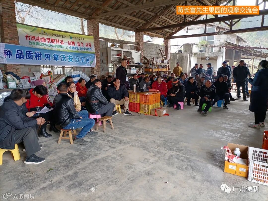 小编第二次看到蒋老板,是在2020年12月11日。当时我们微新生物潘总卖果,蒋老板也特地过来参观交流。潘总的果园位于桂林市平乐县同安镇,离蒋老板那里(灵川县三街镇)有180公里,往返要5个小时。这个路程并不短,但为了加强交流,蒋老板也是不辞辛劳。这样一个举动,也让小编深感敬佩。