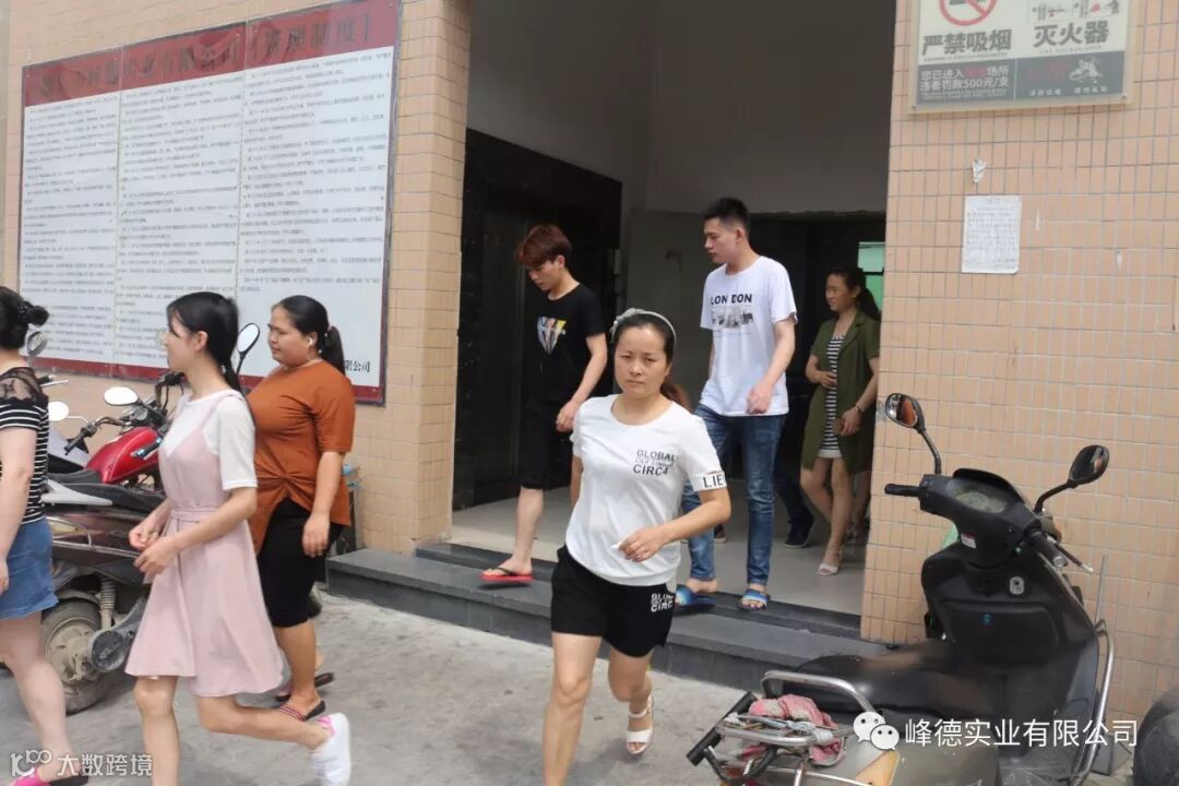 安全员于14:00拉开报警响铃,各车间听到警铃后,各部门主管井然有序的带领本部门员工安全撤离现场,到达公司操场进行集合。