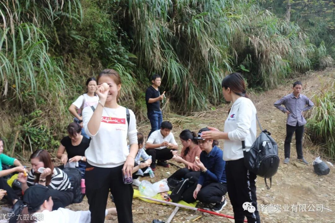 15:10分大家真正登上“峨眉嶂”的那一刻,大家都在反思者平时工作的状态,人的潜能是无限的,只要有目标,有方向我们也一定能到自己想要的达目的地,因为大家凭着坚持的毅力,不找理由,不找借口,在这过程中,有想放弃的,但大家凭着掉皮掉肉不掉队,流血流汗不流泪的信念,互帮互助,你拉我一把,我帮别人一把,不放弃任何一个队伍,大家共同到达目的,分享着这份喜悦和激动,这是一次心灵的放空,为自己的目标而奋斗着。