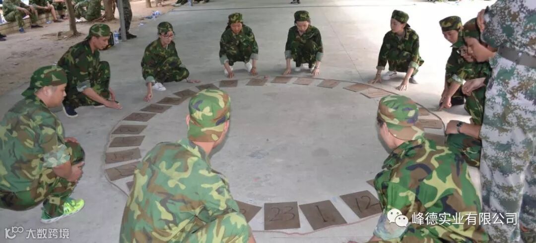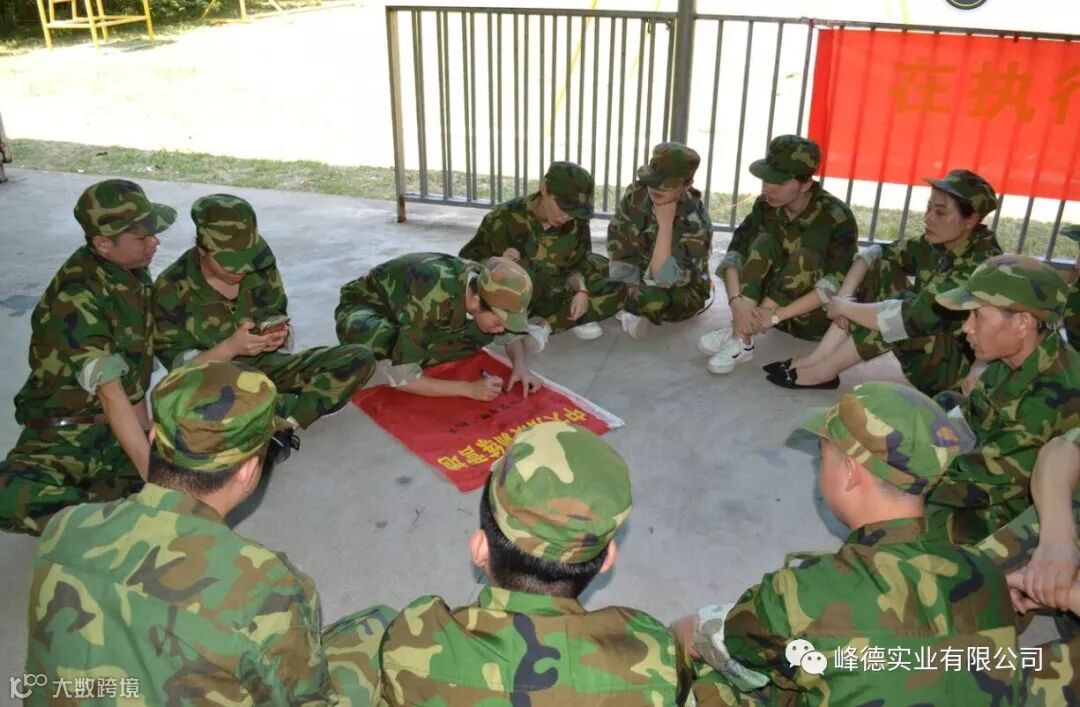 各分队组长带领着自己的队伍集思广议,各抒己见发表自己的想法,经过讨论后取得本组的队名、队呼、队歌,在规定时间内训练之后进行各组评比,评比落后团队集体都受到了相应的惩罚,让大家明白做就要做到最好,对自己的形为结果进行负责任。