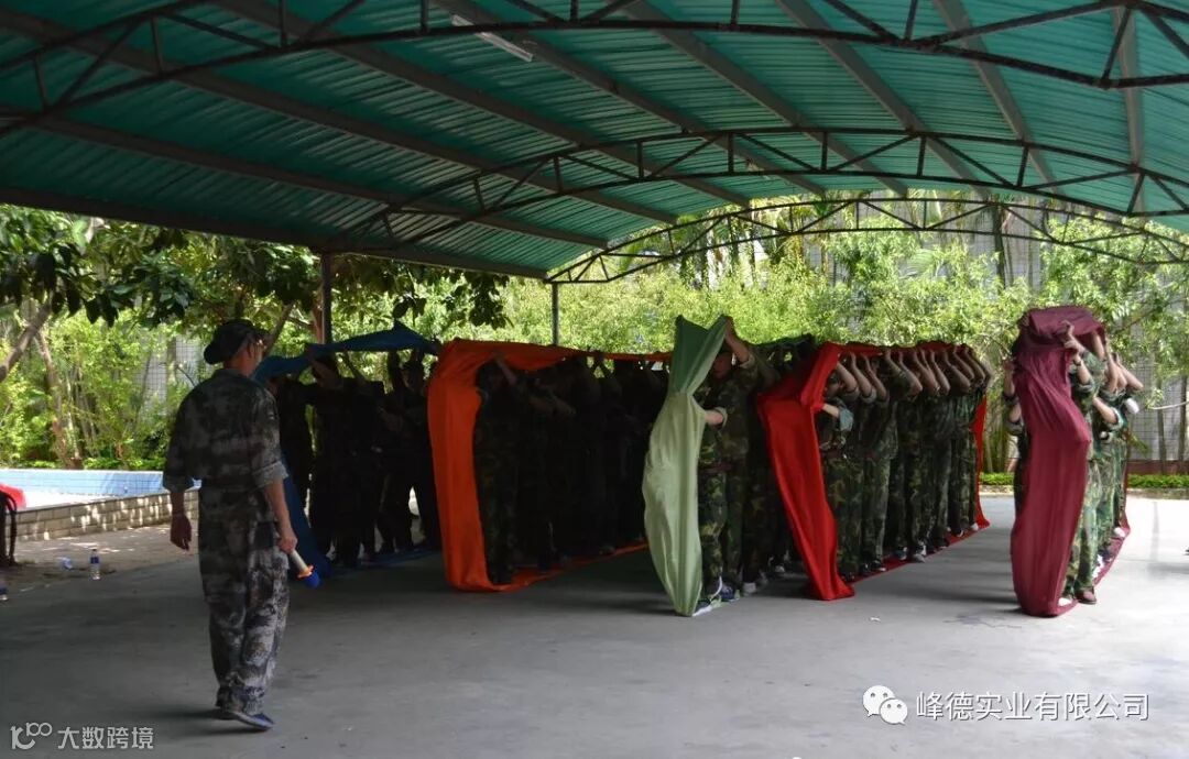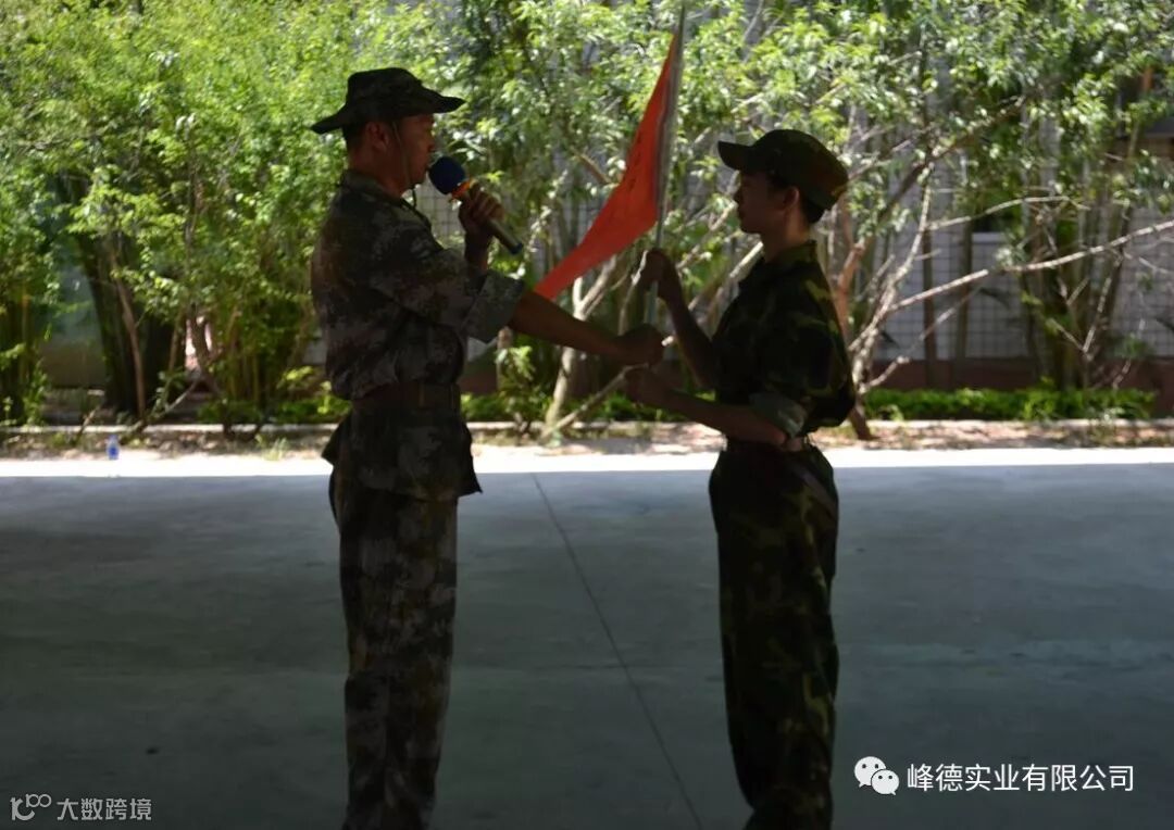 到达训练营后大家都在规定的时间内更换迷彩服,教官开始进行整队、分小组成员、选举出班组长。并进行第一个项目军姿培训:整理着装、立正、稍息、跨立、蹲下、敬礼,让大家明白个人的形象代表不是一个人,在岗位是代表的是企业、国家等。之后进行了本组的授旗仪式,由本组长进行宣誓:人在旗在,人倒旗不倒!代表着一种精神,要对自己的团队负责任,说到就要做到,提高团队的精神面貌、气质和形象,提高团队成员的组织纪律性和服从意识。