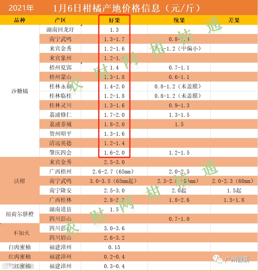2021-1-2:《武宣廖干雄先生沃柑3.4元卖果,跻身同期广西最高价之列》