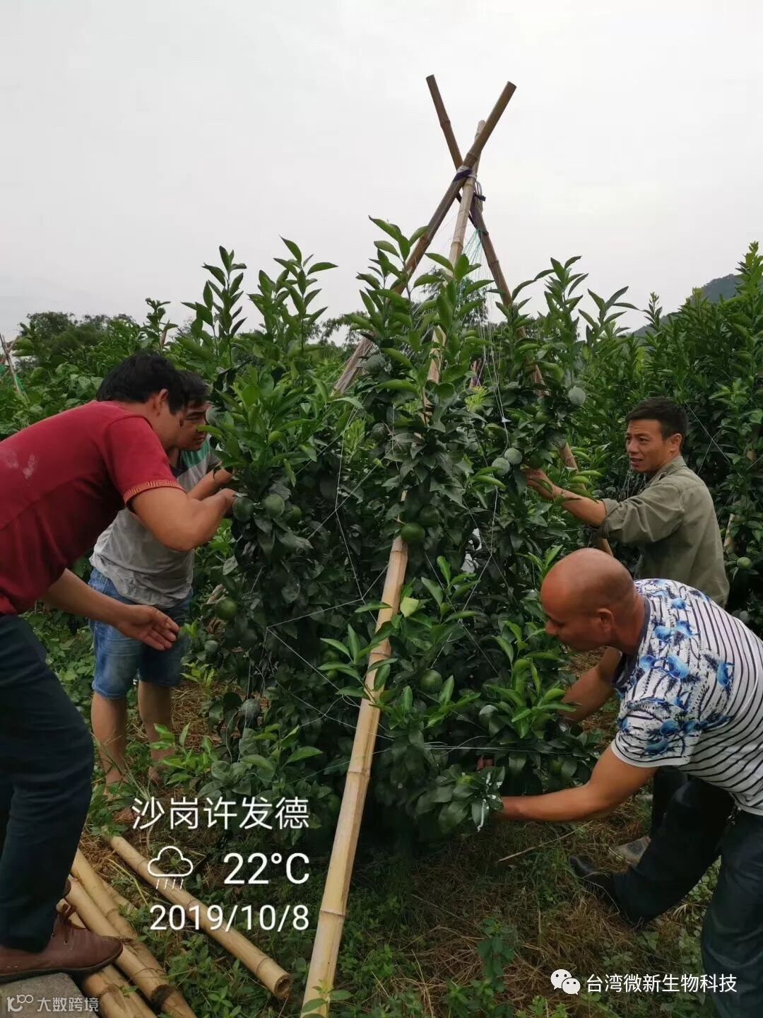 原来是 全程使用台湾共享&台湾微新 许发德先生的沃柑果园,树势 果品 果貌 都太好,引起各路邻居 朋友的羡慕!