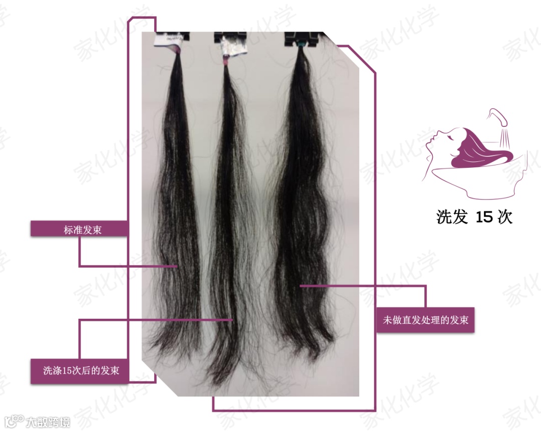 模拟日常洗发 15 次 严苛场景,含 PRO LISS 100直发香波处理发束,对比标准发束,直发效果稳固如初,弧度变化微乎其微,顺滑质感分毫未减,持久魅力清晰彰显。