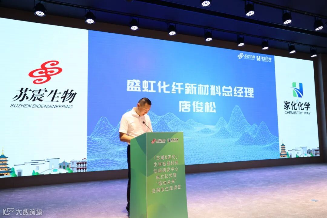 盛虹化纤新材料总经理唐俊松为“生物基新材料创新研发中心”的成立 致辞