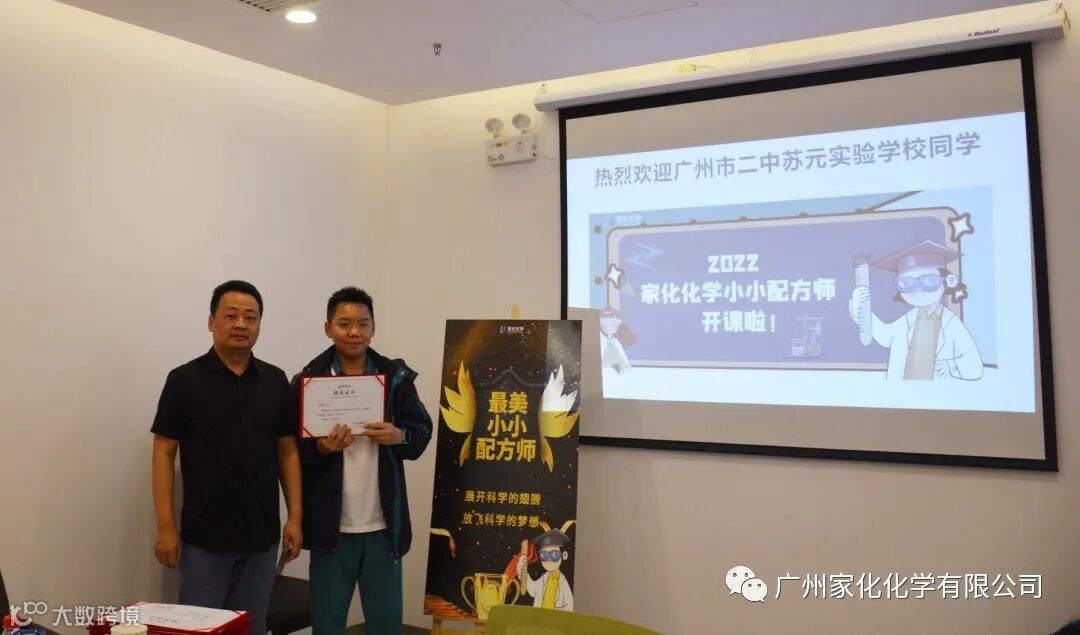 最后,以家化化学董事长朱统臣给广州二中的同学们颁发结业证书中结束这次小小配方师职业体验。
