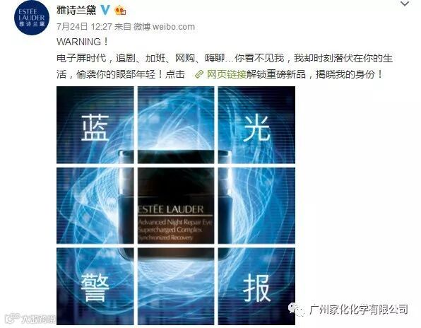 近日,雅诗兰黛发布一款全新眼霜产品—小棕瓶“抗蓝光”眼霜,集新成分、新科技于一体,C位出道的首款抗蓝光眼霜,将人们对于“蓝光”对皮肤的伤害关注度迅速上升至热搜状态。