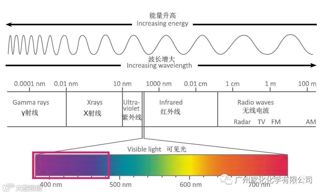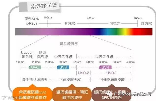 众所周知,人眼可见光的波长范围是380-780nm,自然环境中的光并不只有这一波段的光,只是其他波段的光相比可见光能量很低,而蓝光的波长大致范围430-500nm。UVA :315 - 400nm UVB :280 - 315nm
