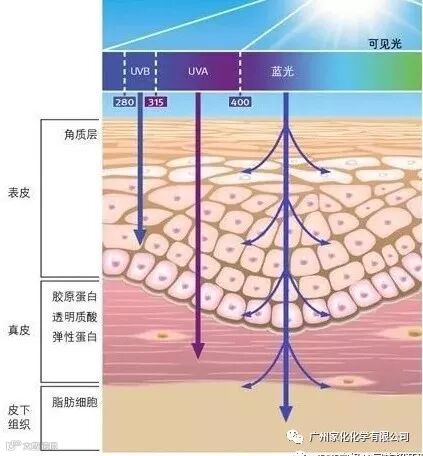 理论上说,基于长时间、大剂量的前提下,虽然蓝光光子的能量没有紫外线强,但是蓝光(400nm~450nm)可穿透至皮肤真皮层,通过诱导细胞产生ROS导致真皮层成纤维细胞损伤,使细胞外基质减少,导致皮肤过早老化。